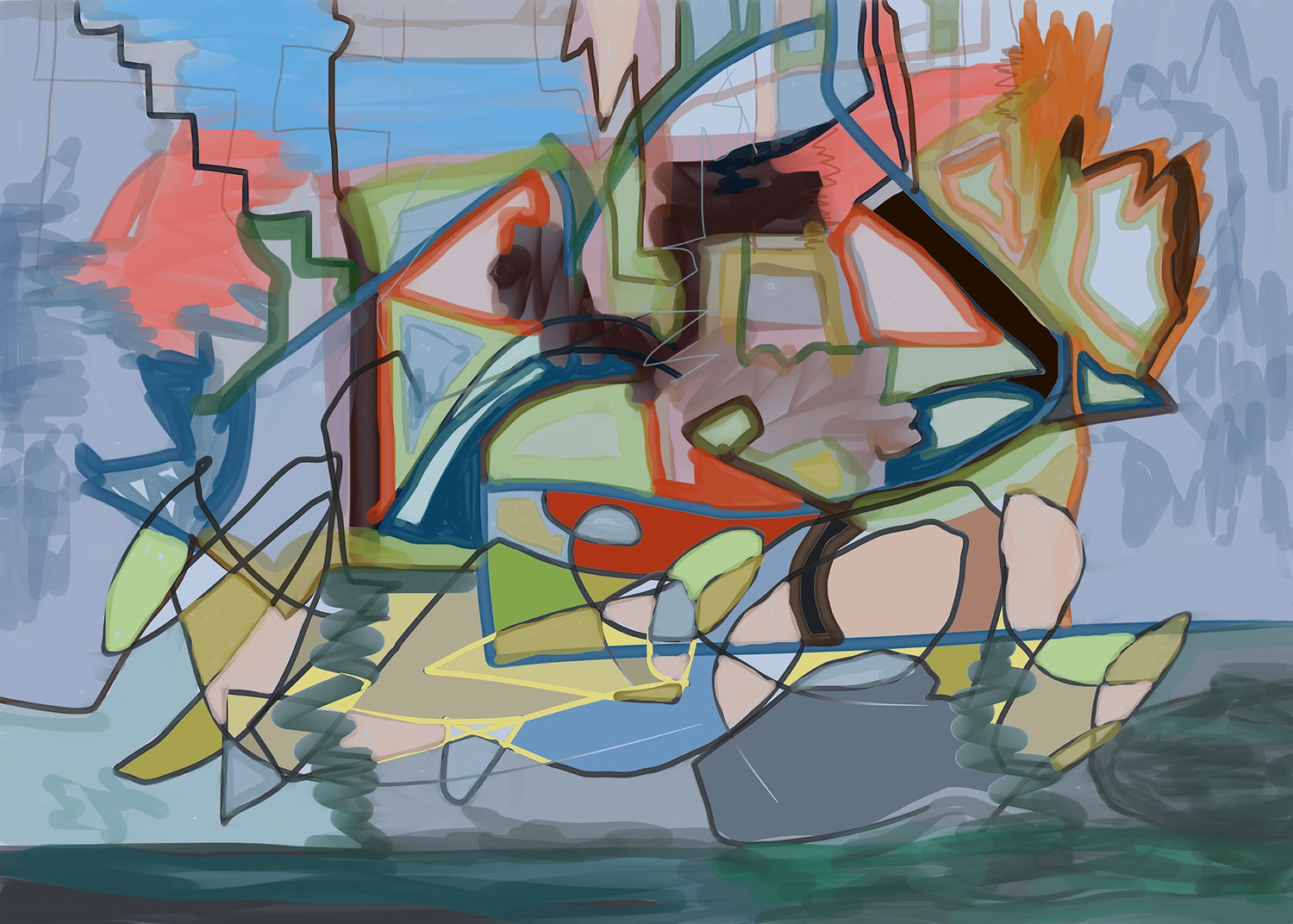 The techniques are often digital or acrylic, or a mix of it, and most of the times I don’t know what to do when I start painting. Or maybe I just have a vague idea of what to do, and just start up. In the beginning it feels like I am the master of the plan, but after a while, it changes, and the painting itself takes over. Now there is a period of battle between me and the painting, but the painting always win. At this moment I have to carefully listen to what the painting is telling me, and how much more I should paint. This is exiting! Is it finished or not…? Sometimes I get it right and sometimes I don’t. If I don’t get it right, I just start up with a new painting. I love it and I do it every day!
